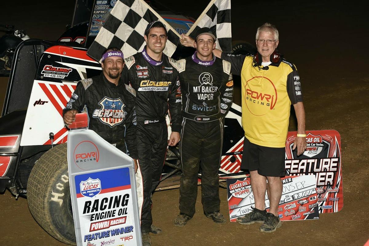 BROWNSTOWN, IL (May 12, 2018) – Mario Clouser triumphed at Fayette County Speedway in Brownstown, Illinois with the POWRi Lucas Oil WAR Wildcard Sprint League to score his first ever sprint car win of his career over hard charging Thomas Meseraull (2nd) and Landon Simon (3rd).